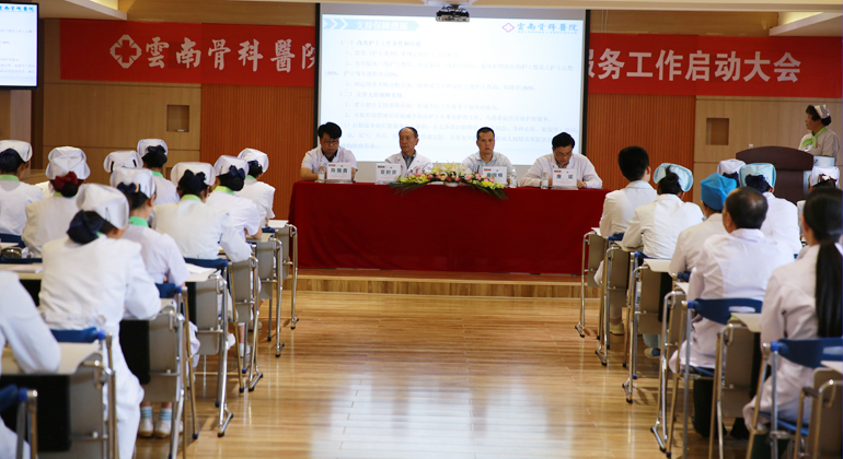 2016年4月16日,云南骨科医院召开全院优质护理服务工作启动仪式暨动员大会,深度贯彻落实国家卫计委深化优质护理、改善护理服务的文件精神。会议由护理部主任杜开珍主持,院领导游国明、行政院长章时彦、医疗院长唐斌、经营院长陈国勇出席了本次大会并发表讲话。