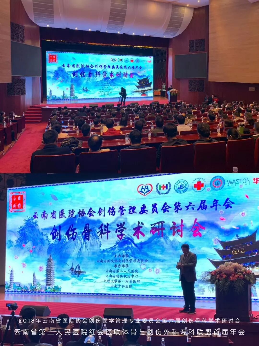 2018年10月20日,云南省医院协会创伤管理委员会第六届创伤骨科学术年会在云南省大理市召开,本次会议由云南省医院协会创伤管理委员会主办,由云南省第二人民医院、云南省创伤救治中心、大理大学第一附属医院、云南骨科医院承办。来自云南省各地州市县级医院、部队医院、民营医院等近700余人参加了本次盛会。我院雷高院长受邀出席了会议开幕式,修复重建显外科中心、综合创伤骨科等三十余名医生、护士参加了本次会议。